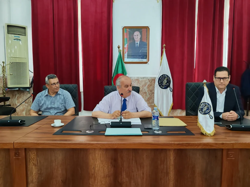تم اليوم الاربعاء 04 جوان 2025 على الساعة 10سا 30 بقاعة الإجتماعات لمديرية الجامعة اجتماع مجلس مديرية الجامعة برئاسة مدير الجامعة البروفيسور بوزياني مراحي بمعية كل من الامين العام للجامعة السيد بن حميد عبدالقادر والسادة نواب مدير الجامعة والسادة عمداء الكليات والسيدة مديرة معهد العلوم الفلاحية .