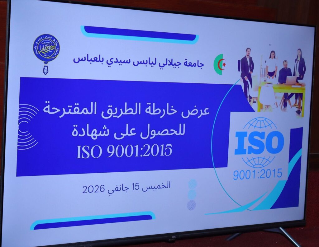 إحتضنت قاعة المحاضرات الدكتور قعفور يوسف بجامعة جيلالي ليابس – سيدي بلعباس، اليوم الخميس 15 جانفي 2026 على الساعة 10:00 صباحاً، لقاءً خصص لاجتماع لجنة قيادة مشروع الحصول على شهادة الأيزو ISO 9001:2015.