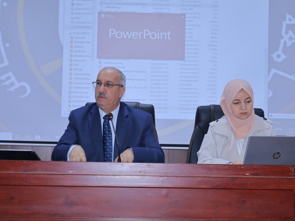 السيد مدير الجامعة البروفيسور بوزياني مراحي اجتماع لجنة قيادة مشروع الحصول على شهادة الأيزو Réunion du comité de pilotage du projet d’obtention de la certification ISO présidée par le Directeur de l’Université, le Professeur Bouziani Merahi Meeting of the steering committee for the ISO certification project chaired by the University Director, Professor Bouziani Merahi