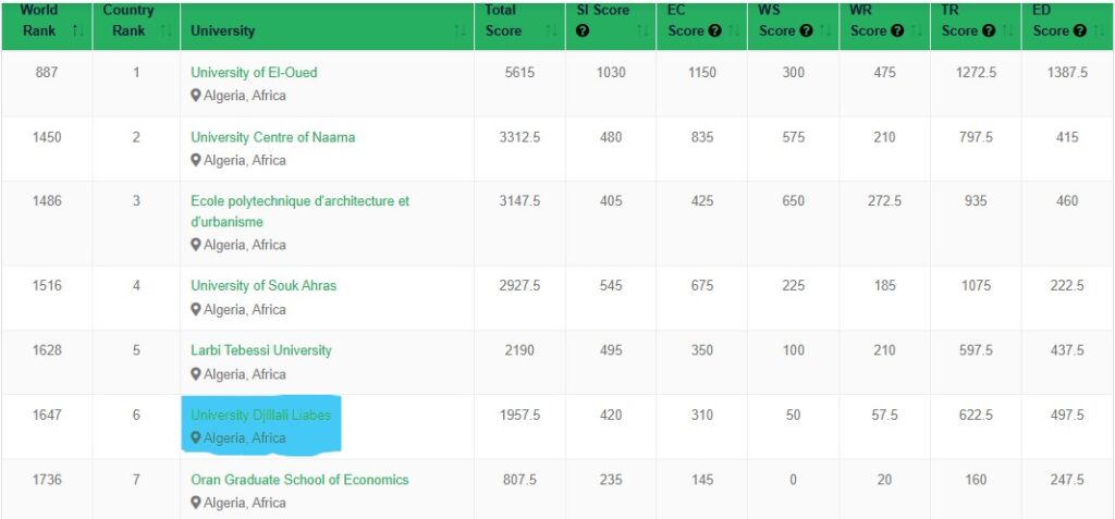 جامعة جيلالي ليابس السادسة وطنيا حسب تصنيف UI GreenMetric