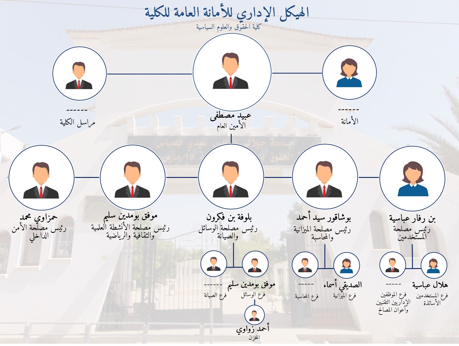 طبقا للقرار الوزاري المشترك المؤرخ في: 2004، والمحدد للتنظيم الاداري لمديرية الجامعة والكلية والمعهد وملحقة الجامعة ومصالحها المشتركة.، فإن الأمانة العامة للكلية تتكفل بما يأتي: