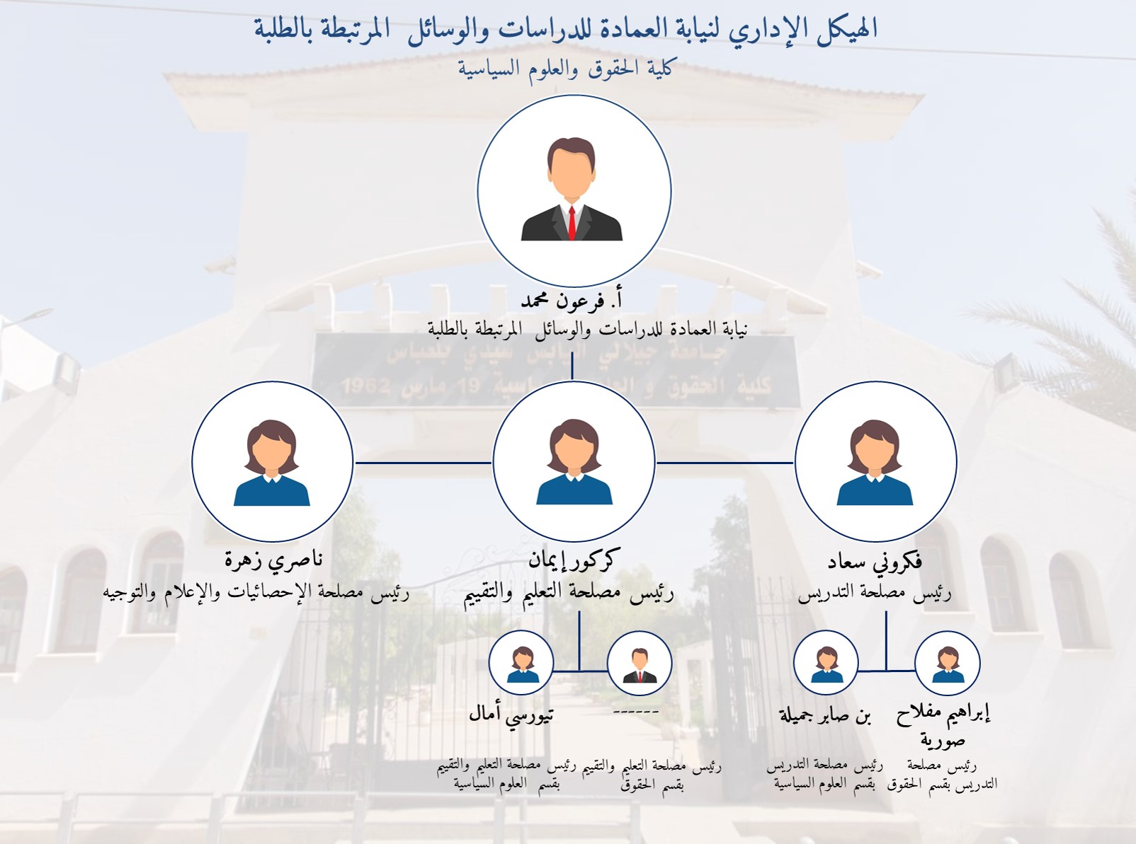 - نائب العميد المكلف بالدراسات والمسائل المرتبطة بالطلبة : أ. محمد فرعون