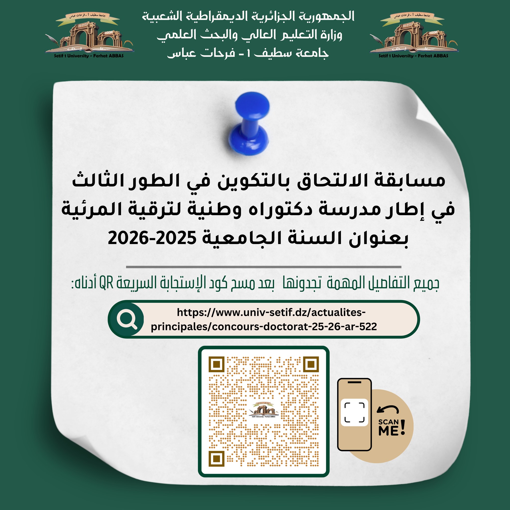 Ferhat Abbas University Sétif 1 is organizing a national competition for admission to Third-Cycle Doctoral Training for the academic year 2025/2026.