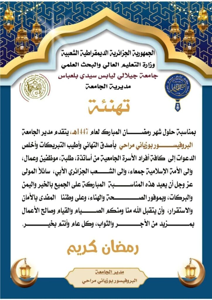 Congratulations from the university director on the occasion of the holy month of Ramadan in the year 1447
