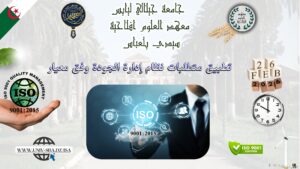 Click here College of Technology: Awareness Day on the ISO 9001:2015 Quality Standard 12 March 2026 Read more » Faculty of Medicine: Awareness Day on the ISO 9001:2015 Quality Standard 12 March 2026 Read more » École normale supérieure de Sidi Bel Abbès – Annexe : Journée de sensibilisation à la norme de qualité ISO 9001:2015 8 March 2026 Read more » Faculty of Electrical Engineering: ISO 9001:2015 Quality Standard Awareness Day 8 March 2026 Read more » Survey on the ISO 9001:2015 Quality Project for faculty members, staff, and students. 7 March 2026 Read more » Faculty of Humanities and Social Sciences: Awareness Day on the ISO 9001:2015 Quality Standard 4 March 2026 Read more » Faculty of Law and Political Science: ISO 9001:2015 Quality Standard Awareness Day 3 March 2026 Read more » Faculty of Law and Political Science: Awareness Day on the ISO 9001:2015 Quality Standard 3 March 2026 Read more » Institute of Agricultural Sciences: Awareness Day on the ISO 9001:2015 Quality Management System 28 February 2026 Read more » Awareness day about the ISO 9001:2015 quality management system 26 February 2026 Read more » Faculty of Nature and Life Sciences: Organization of an awareness day regarding the university’s integration into the ISO 9001:2015 System 24 February 2026 Read more » Meeting of the steering committee for the ISO 9001:2015 certification project. 23 February 2026 Read more » Faculty of Economics: Organization of an awareness day on the Quality Management System in accordance with the ISO 9001:2015 standard. 23 February 2026 Read more » Journey to sensitivity and quality management system ISO 9001:2015 19 February 2026 Read more »