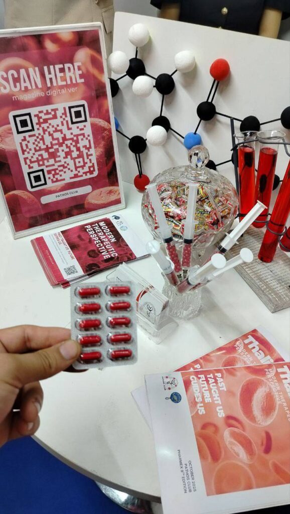 The club also produced a scientific journal in English, featuring a collection of diverse scientific articles written by student members, addressing pharmaceutical topics in a scientific and systematic manner. This participation reflects Pathos Club’s commitment to contributing to the dissemination of scientific culture and fostering a spirit of research and innovation among medical and pharmaceutical students.