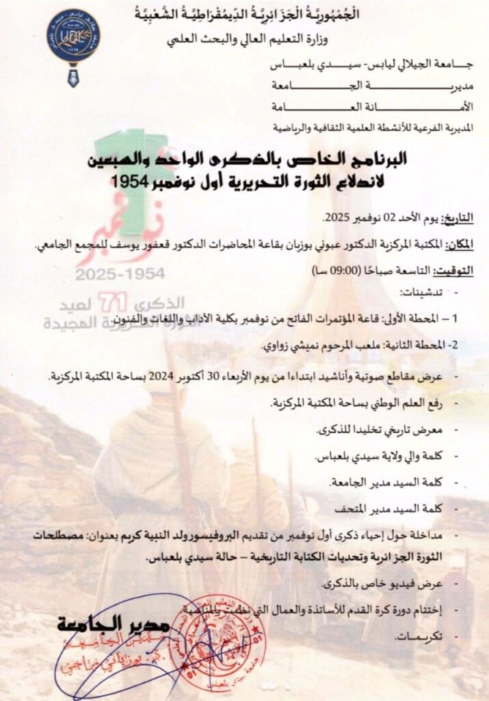 Invitation du Directeur de l’Université et Programme de la Célébration du 71ème Anniversaire du Déclenchement de la Glorieuse Révolution du 1er Novembre