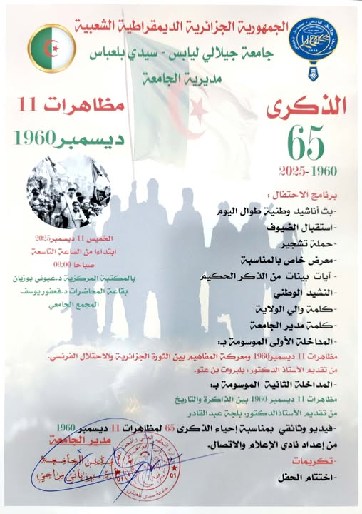 Programme de l’Université de Sidi Bel Abbès pour la commémoration du 65ème anniversaire des manifestations du 11 décembre 1960