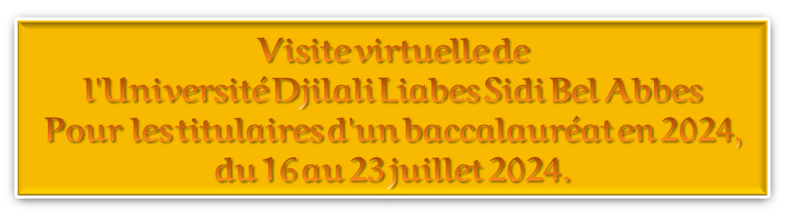 Visite Virtuelle de l’Université Djilali Liabes, Sidi Bel Abbes Date 18 juillet 2024 Share: Previous post Avis de consultation N° 47_2024 18 juillet 2024 Next post Annonce des résultats Final du concours de recrutement pour l’accès au grade de Maître Assistant Classe B - 2024 5 août 2024 You may also like Concours d’accès à la formation de Doctorat troisième cycle au titre de l’année universitaire 2024/2025 11 décembre, 2025 Institut des Sciences Agronomiques: Avis d’Attribution Provisoire du Contrat de la Consultation N° 40/2025 11 décembre, 2025 Direction de l’Université: Avis d’attribution provisoire des Consultations N° 75 à 82/2025 et 73/2025 11 décembre, 2025