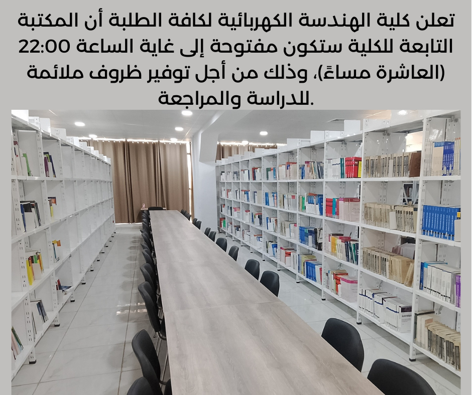 تفتح المكتبة أبوابها لغاية الساعة 10 مساءا