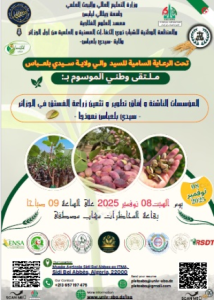 تحت الرعاية السامية للسيد والي ولاية سيدي بلعباس، تنظم جامعة جيلالي ليابس – معهد العلوم الفلاحية، بالتنسيق مع المنظمة الوطنية للشباب ذوي الكفاءات المهنية والعلمية من أجل الجزائر، ملتقىً وطنيًا تحت عنوانـ: