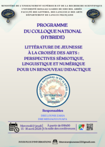 الملتقى الوطني برنامج الملتقى الوطني الهجين “أدب الطفل عند تقاطع الفنون: مقاربات سيميائية ولسانية ورقمية من أجل تجديد ديداكتيكي” 📅 الأربعاء والخميس 15 – 16 أفريل 2026 المسؤولون: • د...