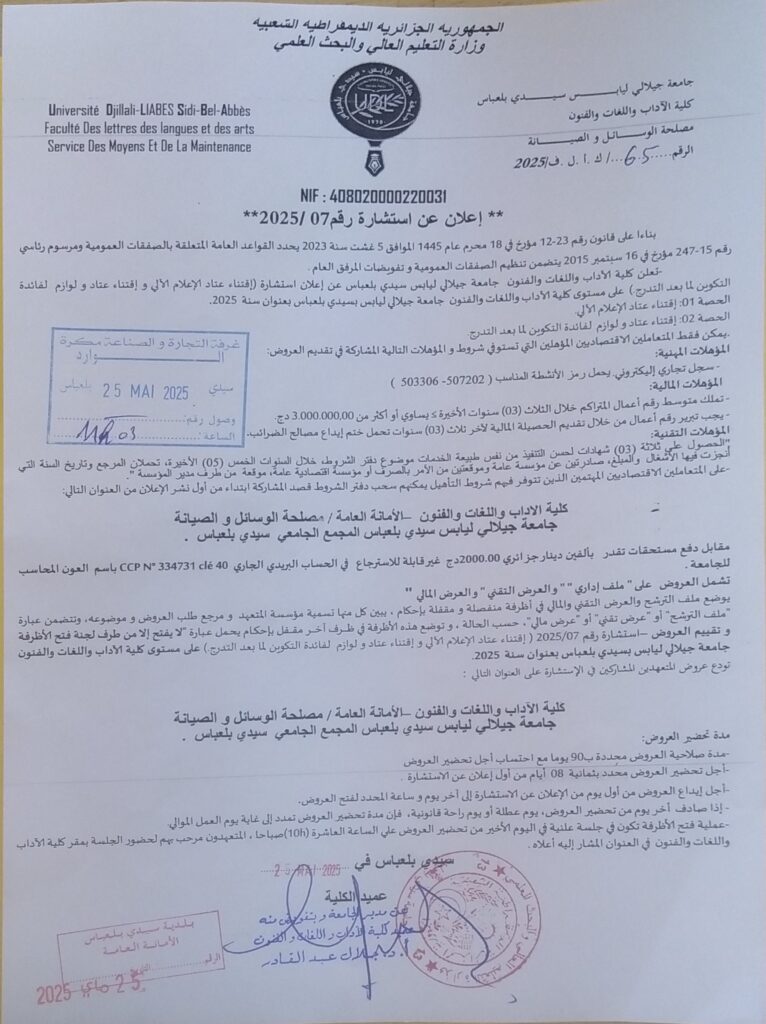 ✉ صندوق بريد 89 سيدي بلعباس الجزائر