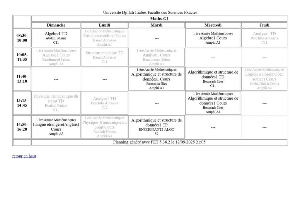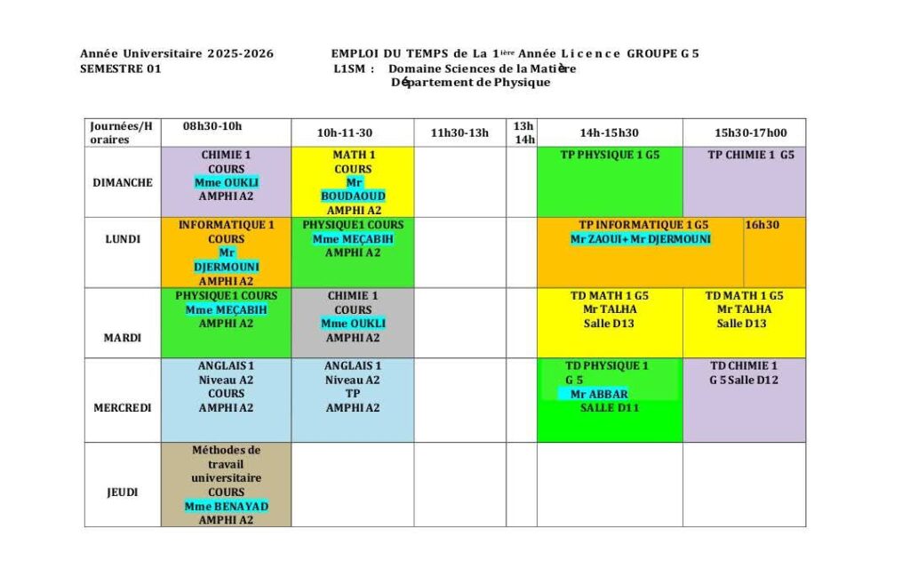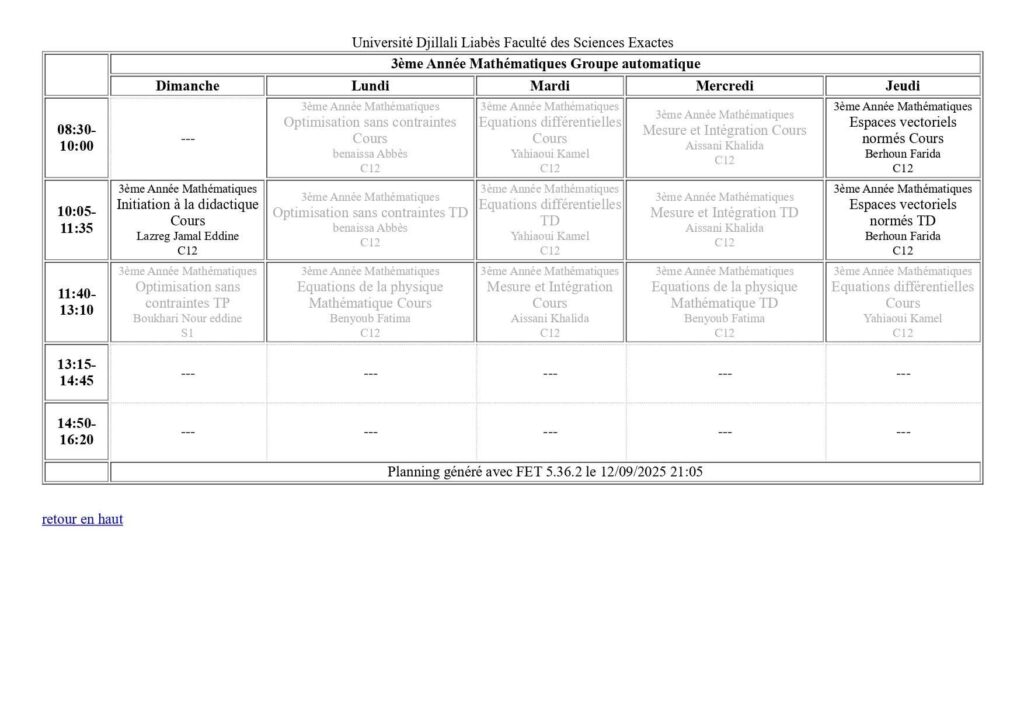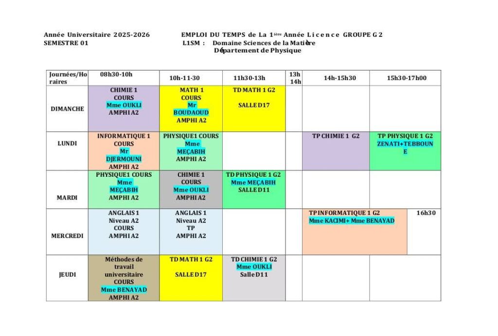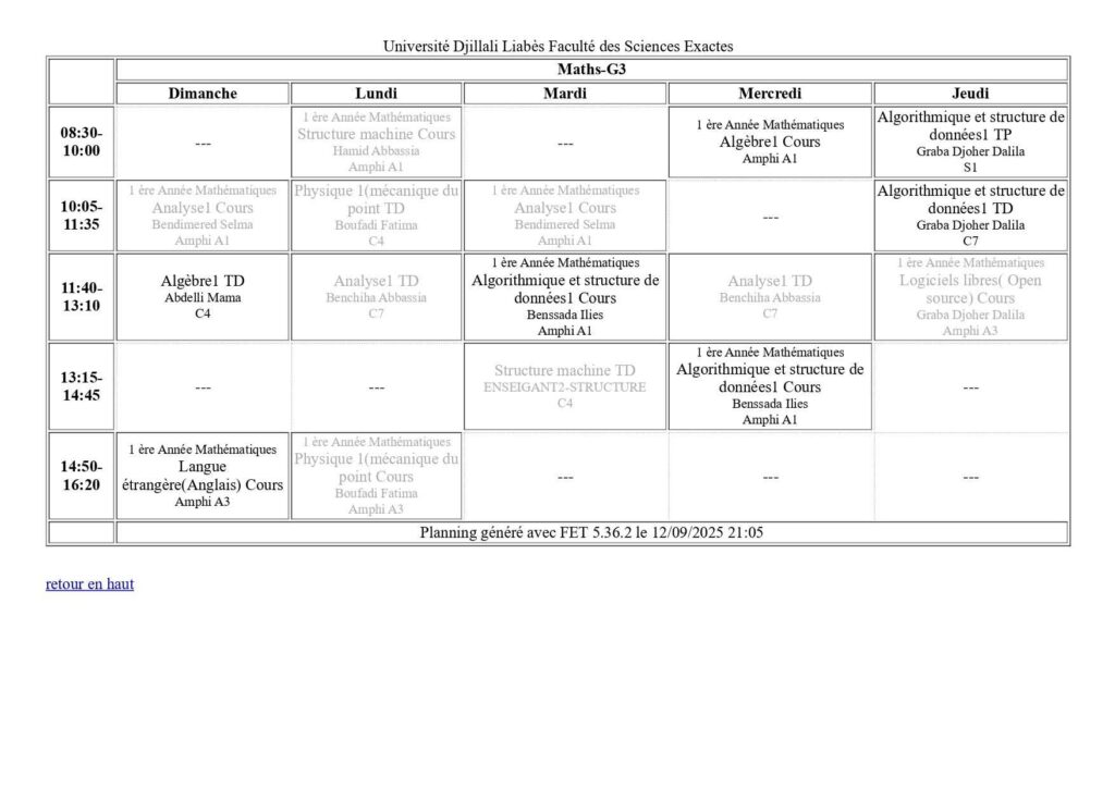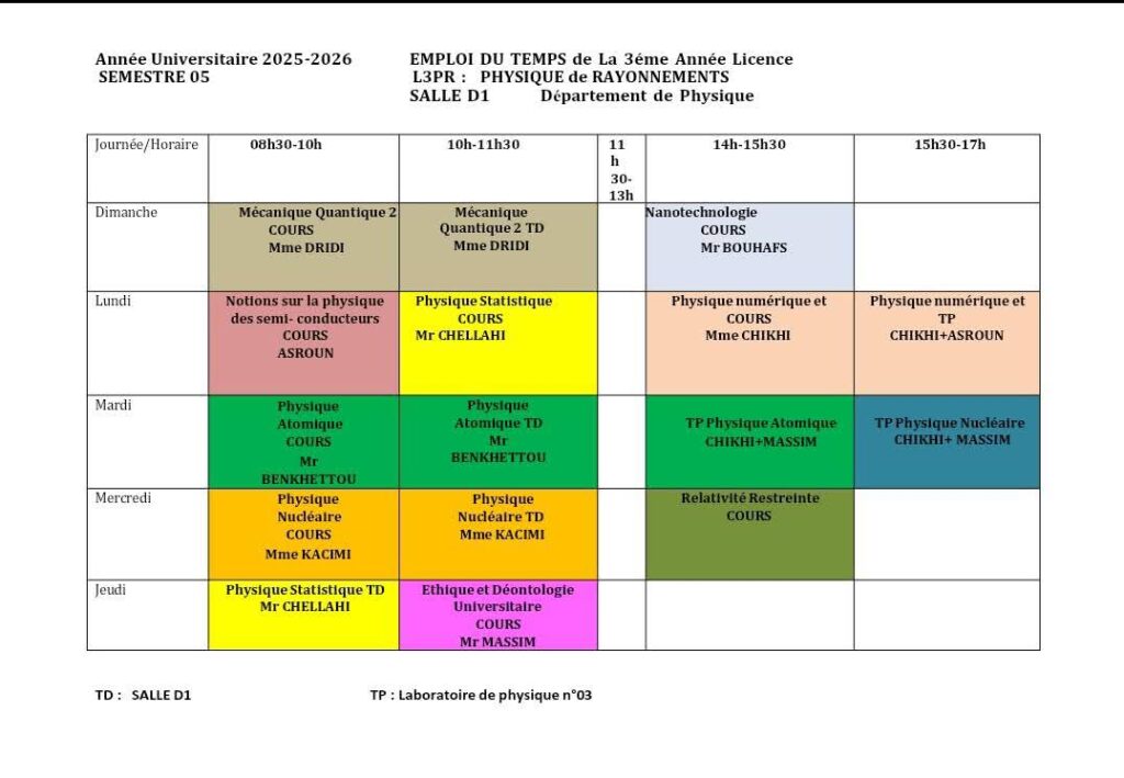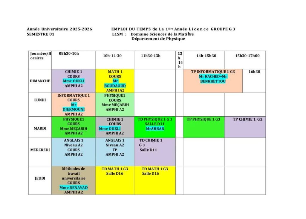 Emploi du temps Département de mathématiques Département de probabilités et statistiques Département de physique Département d’informatique