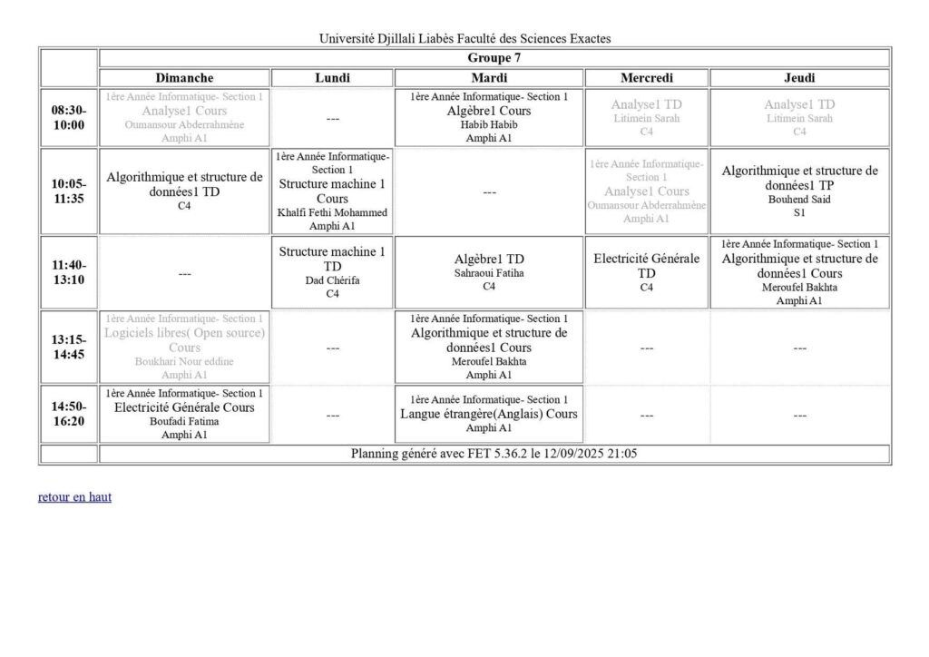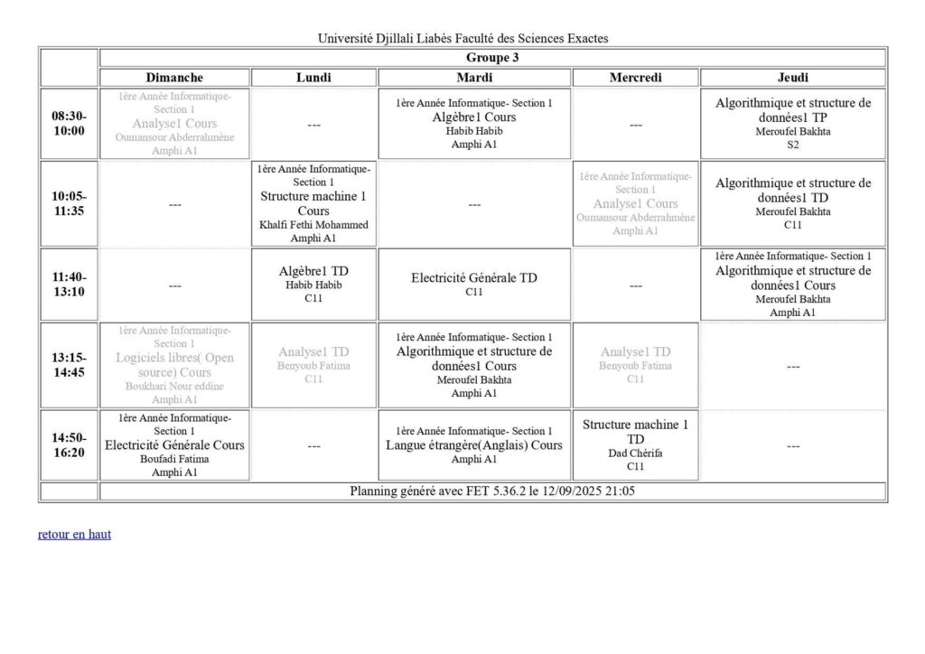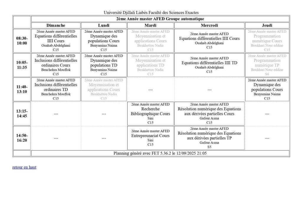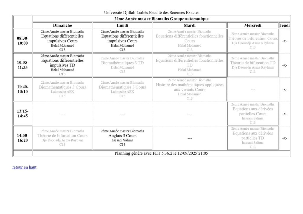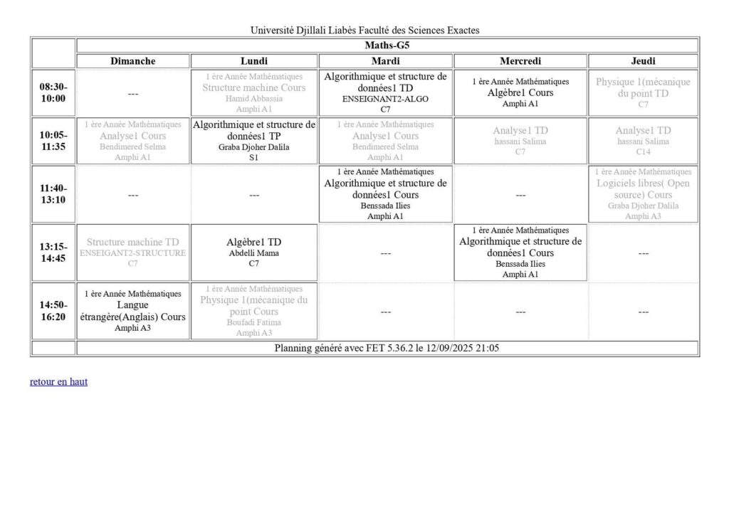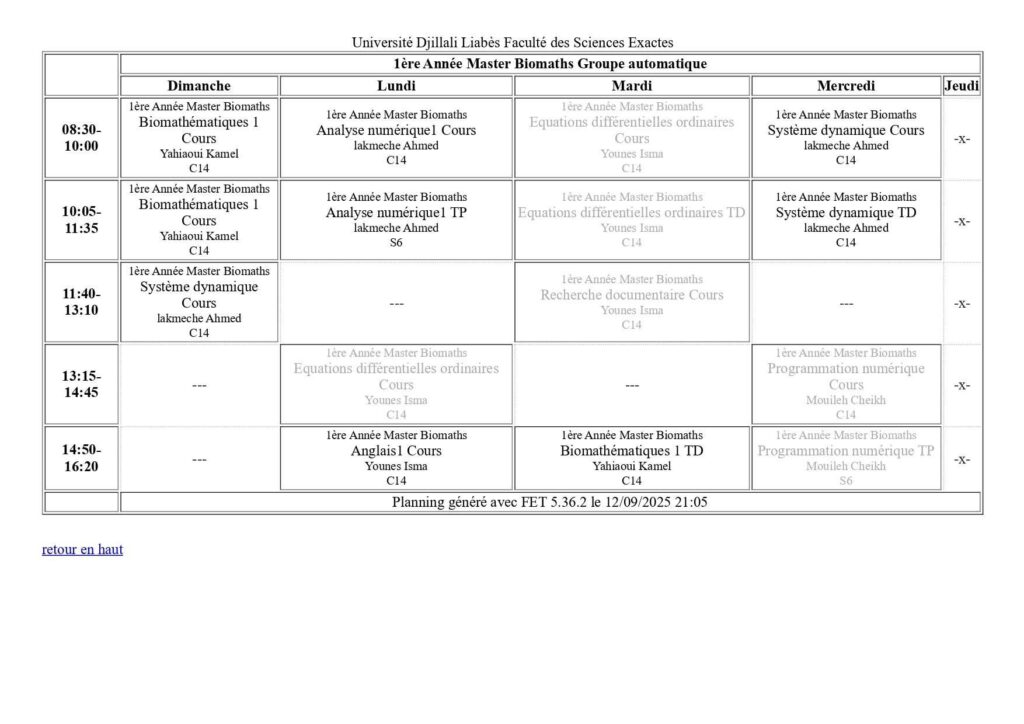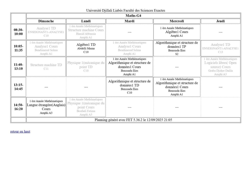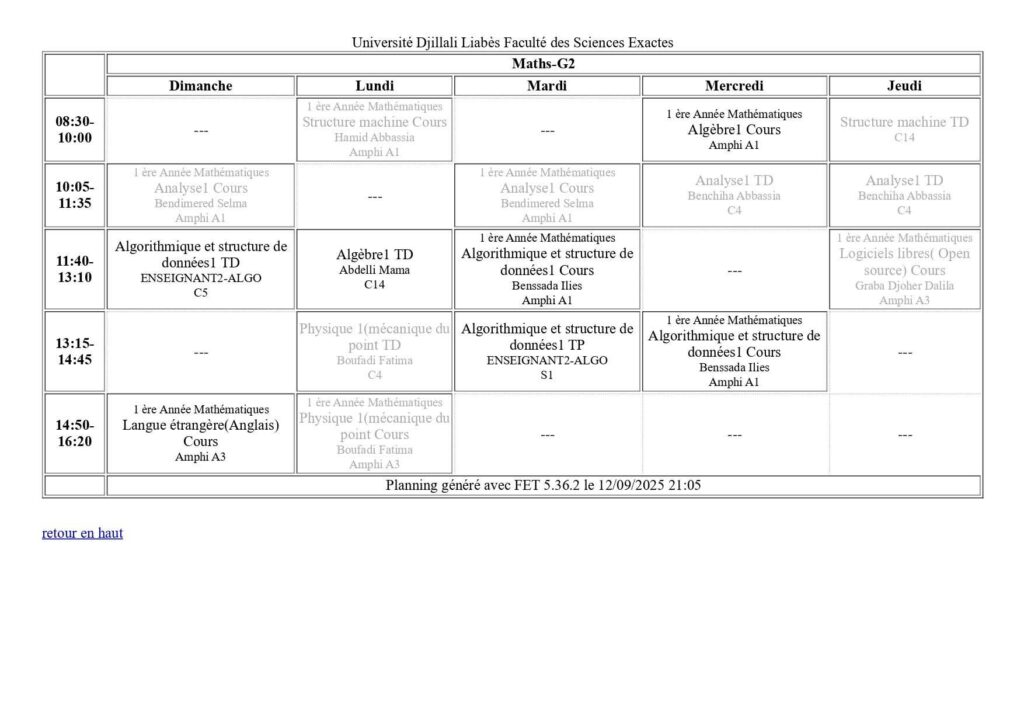 Emploi du temps Département de mathématiques Département de probabilités et statistiques Département de physique Département d’informatique