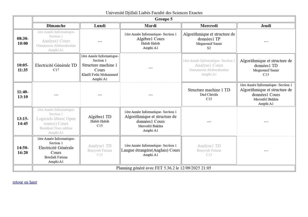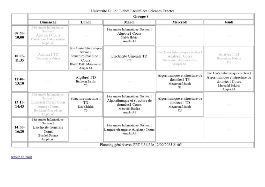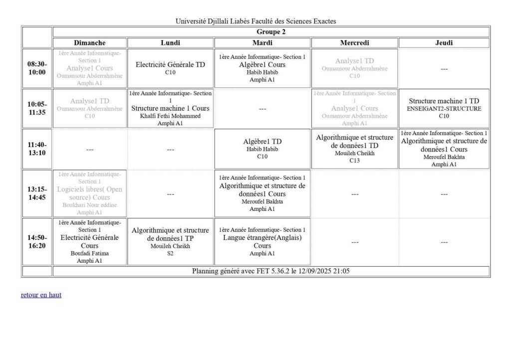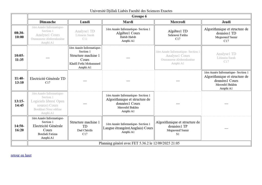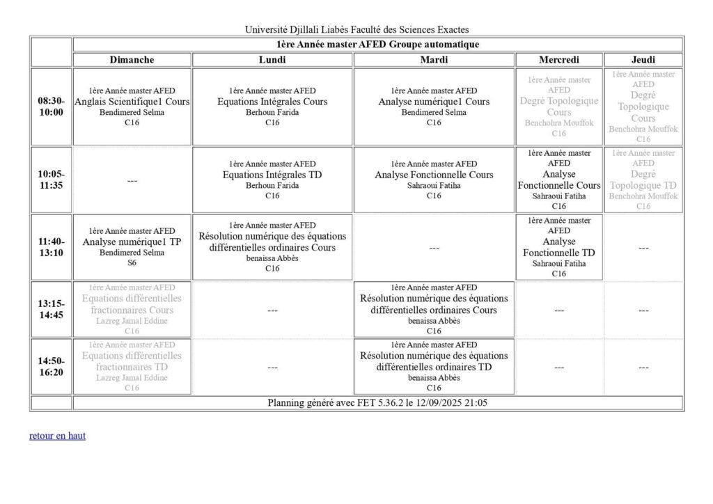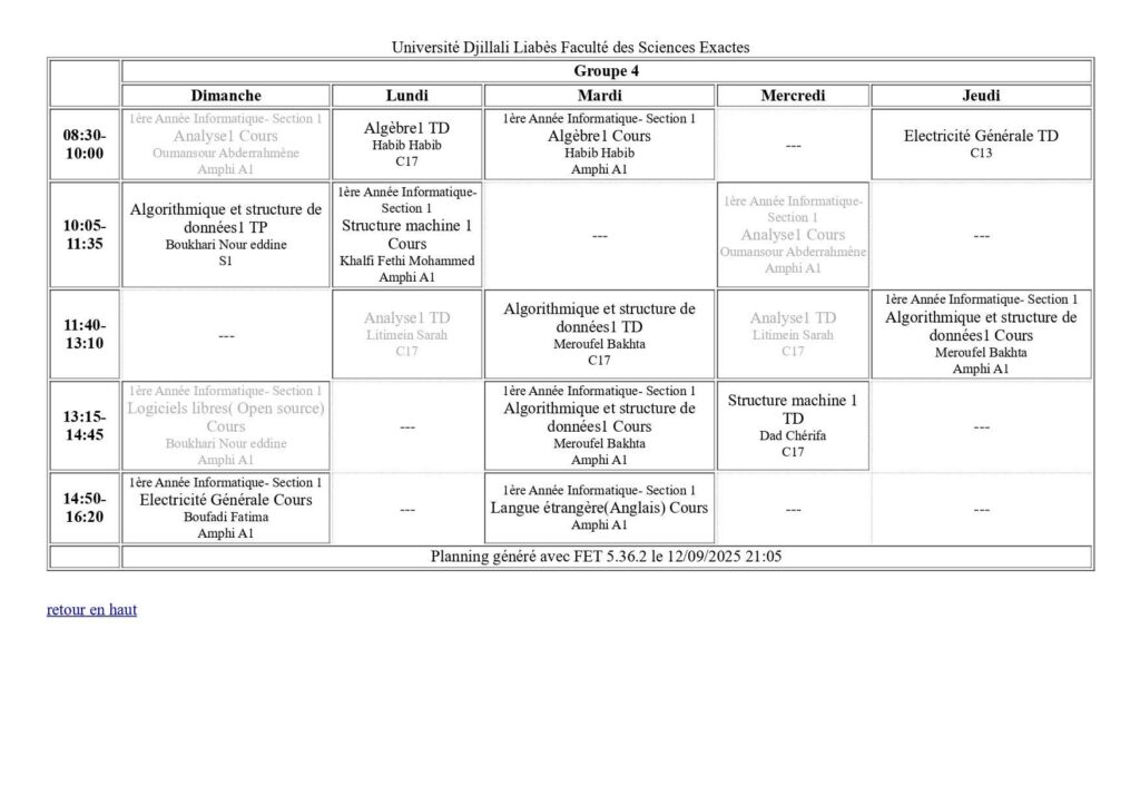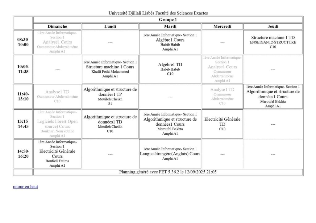 Emploi du temps Département de mathématiques Département de probabilités et statistiques Département de physique Département d’informatique