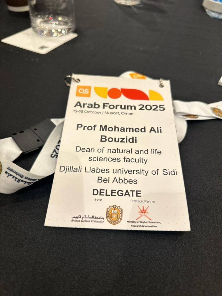مُمثلاً لمدير جامعة جيلالي ليابس، شارك عميد كلية علوم الطبيعة والحياة الأستاذ محمد علي بوزيدي في المنتدى العربي لتصنيف الجامعات (QS Arab Forum) بجامعة السلطان قابوس. وخلال الحدث، تم تكريم جامعة جيلالي ليابس بعد حصولها على المرتبة 191 عالميًا، تقديرًا لجهودها الأكاديمية والعلمية المتميزة