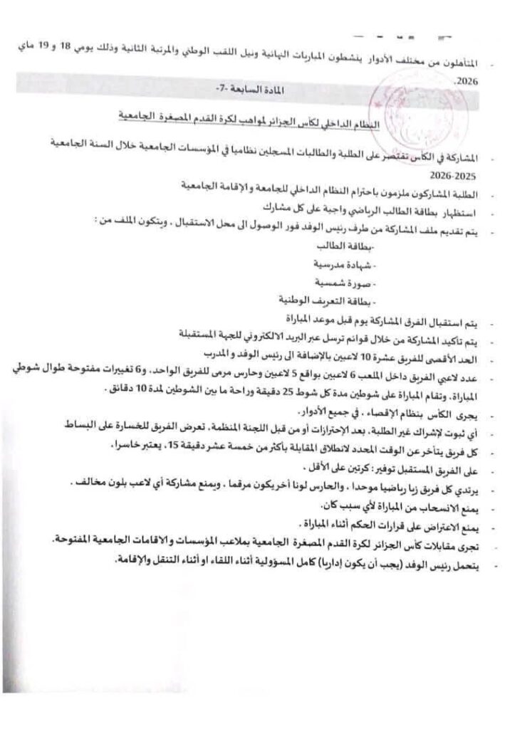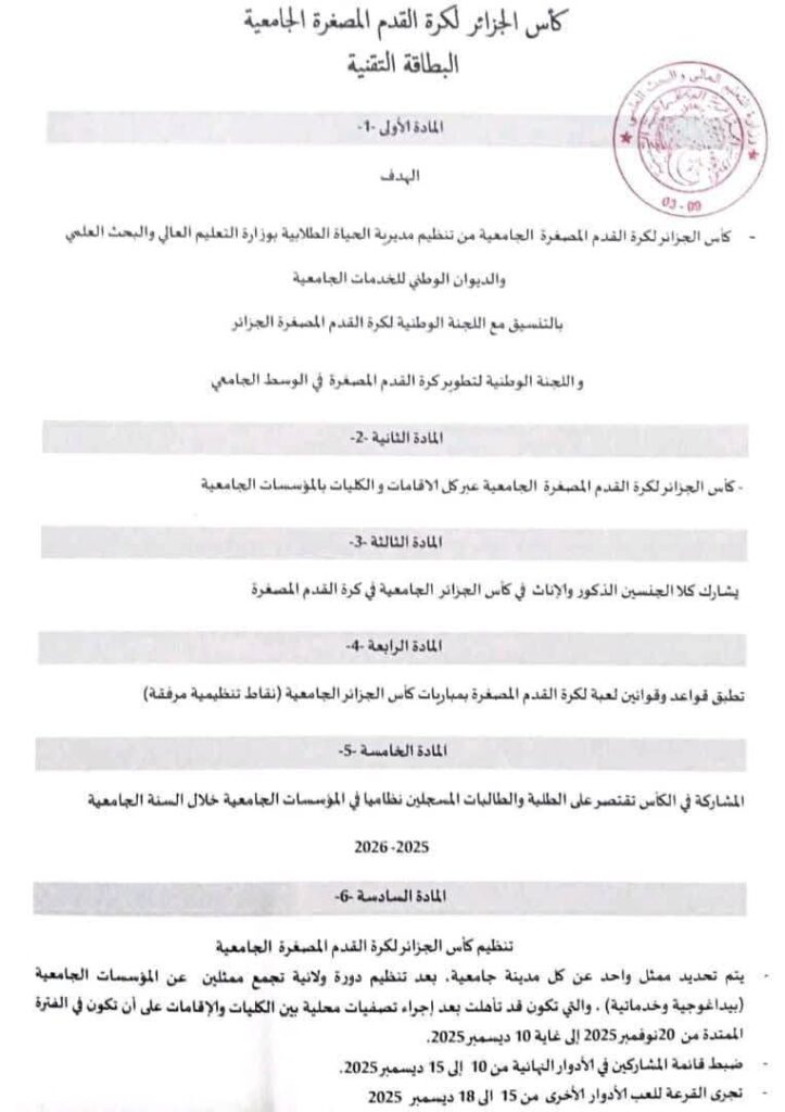 As part of the third edition of the Algerian University Mini-Football Cup, organized by the Ministry of Higher Education and Scientific Research in coordination with the National Office of University Services and the National Mini-Football Committee, from November 2025 to May 2026, with participation from all university cities across the country, we are pleased to provide an overview of this edition: