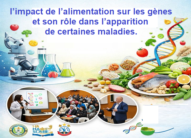 Dans le cadre des activités de la Faculté des Sciences de la Nature et de la Vie, et en coordination avec le Service des activités culturelles, avec la contribution du club Ha Somie, une activité scientifique de sensibilisation a été organisée autour de l’impact de l’alimentation sur les gènes et son rôle dans l’apparition de certaines maladies.