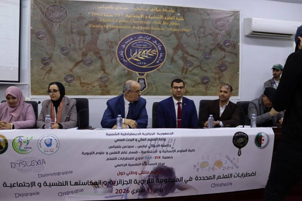 نظمت اليوم كلية العلوم الانسانية و الإجتماعية، قسم علم النفس و علوم التربية،جمعية “ديس سيس” و مركز المساعدة النفسية الجامعي الملتقى الوطني الموسوم “إضطرابات التعلم المحددة في المنظومة التربوية الجزائرية و إنعكاساتها النفسية و الاجتماعية” و قد عرف الملتقى حضور السيد مدير الجامعة البروفيسور بوزياني مراحي، عميد الكلية البروفيسور الأحمر قادة، رئيس قسم علم النفس و علوم التربية أ.حبال ياسين، رئيس قسم علم الإجتماع أ.فكروني الزاوي،رئيس قسم العلوم الاجتماعية أ.حساين دواجي الغالي، نائب العميد المكلف بما بعد التدرج و البحث العلمي و العلاقات الخارجية أ.عشاش نورين ، السيد الأمين العام للكلية ، و رئيسة الجمعية السيدة بريكسي عدو غزلان. شهدت الفعالية مشاركة نوعية لأساتذة و باحثين و مختصين حيث تم تداول مختلف الجوانب المرتبطة بإضطرابات التعلم من حيث التشخيص و آليات التكفل و المرافقة النفسية و التربوية، مع فتح نقاش علمي ثري حول سبل تعزيز الإدماج و الدعم داخل المؤسسات التعليمية،في إطاردعم البحث العلمي و ترسيخ الوعي بأهمية مرافقة هذه الفئة و تعزيز فرص نجاحها الدراسي و الاجتماعي