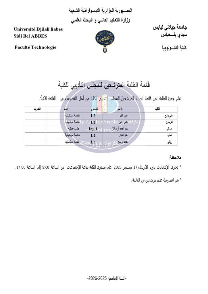 Liste des étudiants candidats au conseil disciplinaire de la faculté / Actualités, Etudiants / Par admfst